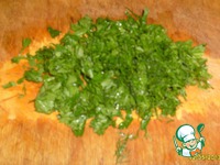 Мелко крошим зелень. |