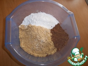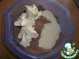 Затем добавляем сахарную пудру и какао-порошок. Перемешать.