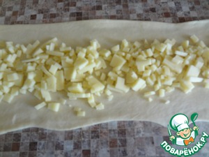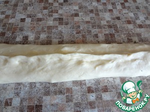 Каждую часть раскатать колбаской и эту колбаску тонко раскатать.