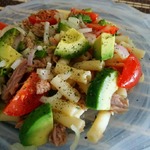 7. Сделать заправку; чеснок, перец, соль, масло, винный уксус смешать и заправить салат.
