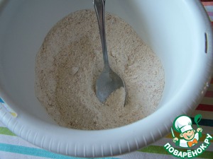 Добавьте в сухую смесь белки и перемешайте ложкой.