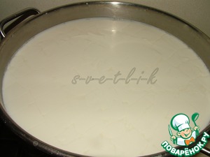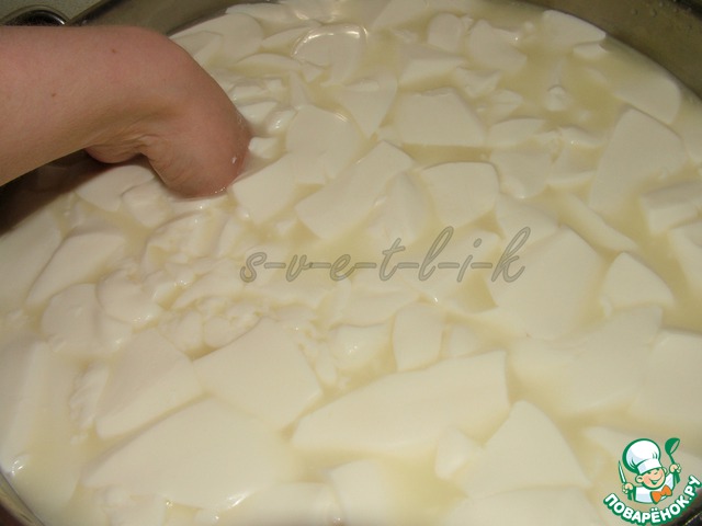 Через 1-2 часа молоко свернется - образуется сгусток в виде плотного желе.