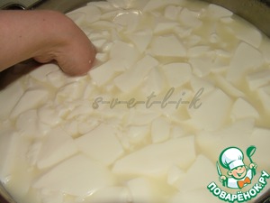 кусочек сыра12 литров молока. И говорит: "Сделай-ка мне, невестушка, сырка". И такое у нас бывает частенько - как минимум, раз в неделю. Но я не только свёкру сыр делаю, себе, конечно, тоже. -