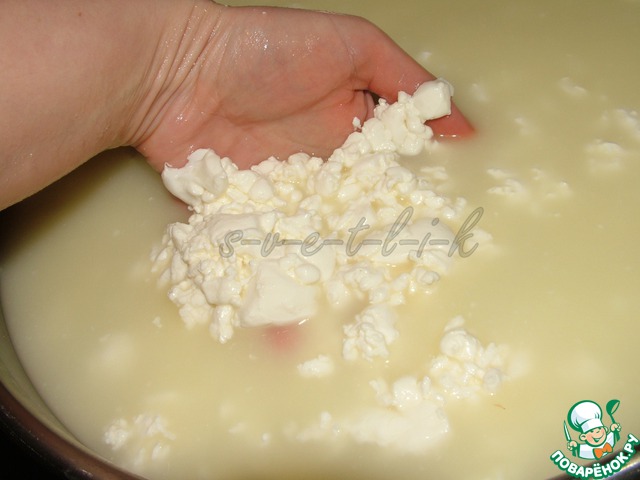 Сливаем сыворотку (можно использовать дуршлаг).