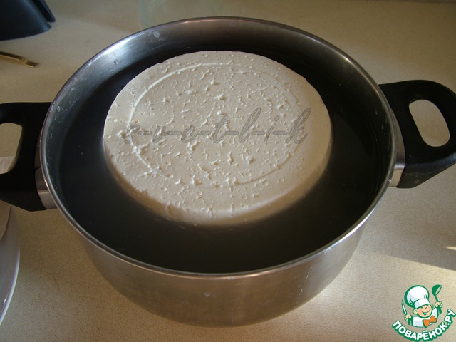 Сыр нужно немного отпрессовать. Я беру гантели мужа или что-нибудь тяжеленькое))) Прессуем 2-3 часа.