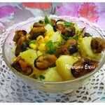 [+4]П.С. Я перед едой салат все-же перемешала. И картофеля у меня мелкого не оказалось совсем, поэтому отварила крупный и потом порезала кусочками.