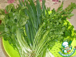 - Зелень (лук, петрушка, укроп, кинза по 1 пучку) — 1 пуч.