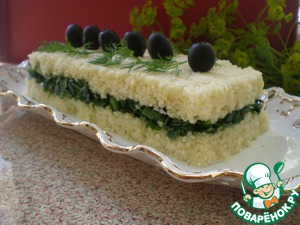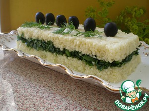 Сверху накроем зеленью и вторым слоем кус-куса.