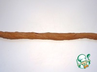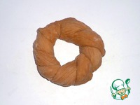 Тесто разделить на несколько кусочков, от размера кусочка будет зависеть размер бублика. Я тесто делила на 6 частей. Из каждого кусочка сделать длинную колбаску. |