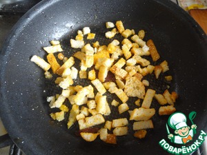 В сковородке разогреть оливковое масло и поджарить в нём 2 измельчённых зубчика чеснока. Потом чеснок удалить и в этом же масле жарить 2 минуты цуккини, чтобы они стали мягкие, посолить по вкусу. После этого несколько секунд подержать в раскалённой сковороде хамон.