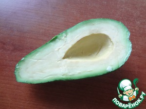 Разрезать пополам авокадо, удалить косточку и почистить его.