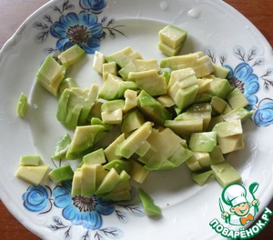 Нарежем кубиками или дольками и сбрызнем лимонным соком, чтобы он не потемнел.