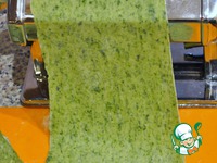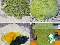 Просейте муку, добавьте яйца, соль, шпинат и масло. Постепенно замесите тесто. Месите до однородного состояния 20 мин.