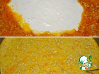 Когда подготовлено всё для приготовления лазаньи, смешаем рагу и соус бешамель. Немного соуса бешамель я оставлю, чтобы налить его на дно формы. Первый лист лазаньи положить на него, а также смазать соусом верхний лист лазаньи перед запеканием.