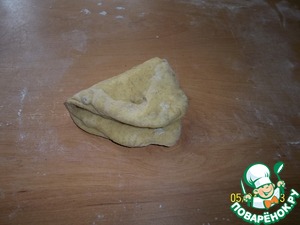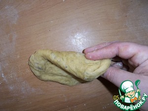 • После второго звукового сигнала, выньте тесто и сформируйте не большую колбаску.