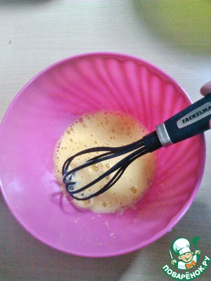 • Яйца взбить и добавить к маслу, постоянно помешивая венчиком.