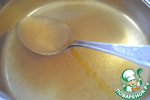 Добавить остальное вино, перемешать и довести на слабом огне до кипения. Варить 1-2 мин на самом маленьком огне, постоянно помешивая (пока полностью не растворится сахар и желатин). Снять с огня и чуть-чуть остудить (минут 5)