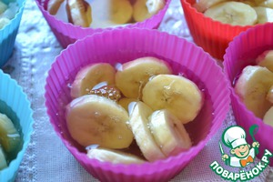 Бананы нарезать кружочками и выложить в формочки для кексов.