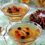 Поставить формочки с желе (нижнюю часть)в горячую воду на несколько секунд и перевернуть желе на тарелку.
