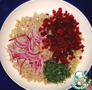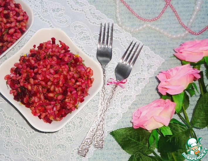 Рецепт «Тёплый перловый салат с овощами "Розовый жемчуг"»: