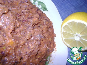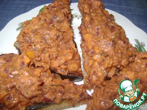 Паштет для брускетты используем тот же, что и для цимеса, добавив сок половинки лимона.