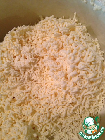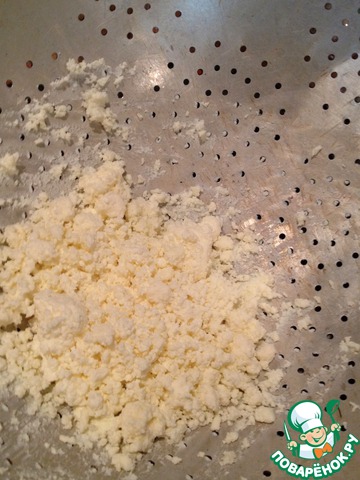 Итак, первый шаг - самый сложный! Протереть творог через мелкое сито, это, конечно, будет стоить Вам некоторых усилий, но результат превосходит все ожидания!