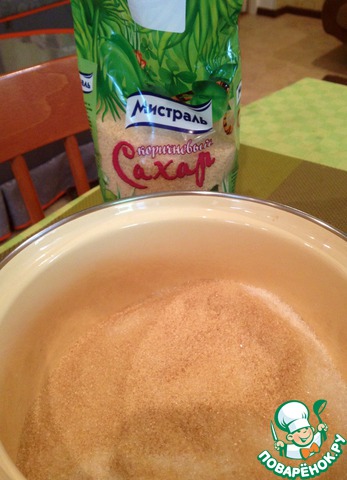 • Отмерить 500г сахара, у меня коричневый "Мистраль" и немного обычного белого.