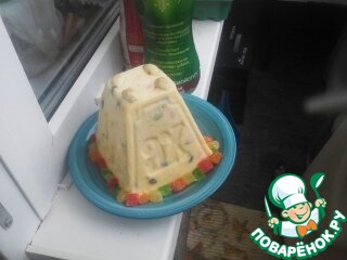 Пробный вариант в преддверии праздника. Нужно было определить расход продуктов на форму. Пропорции немного другие, но принцип такой же. Из набора: творог 18% - 500 гр,