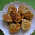 В тесто можно завернуть обезжиренный творог, а можно просто смазать маслом и ничего не заворачивать, на это количество муки, что я указала, можно добавить 1/2 ч.л. гашеной соды и тогда не выдерживать тесто а готовить сразу.Удачи Вам!