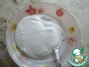 Теперь дадим волю фантазии и немного украсим пасху. Приготовим для украшения айсинг (смесь сахарной пудры и белка). Куриные яйца мою с детским мылом, обдаю горячей водой -1 секунду, отделяем белок от желтка. Взбивая слегка вилкой белок, будем порциями в 10 приемов добавлять сахарную пудру и размешивать вилочкой до растворения, в конце добавить лимонный сок. Миксер не использовать! Когда получится однородная пышная масса, накрыть пищевой пленкой и дать настояться 10 минут (чтоб вышел лишний воздух!)