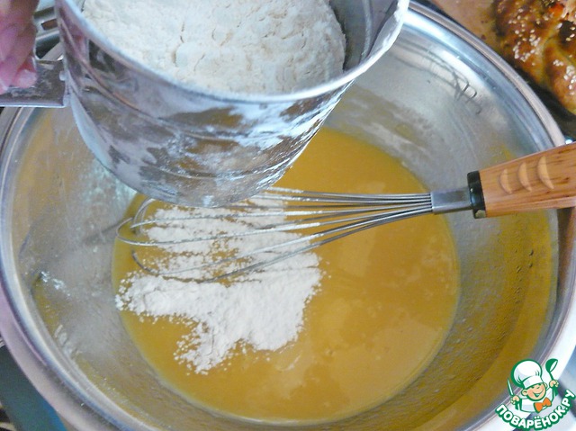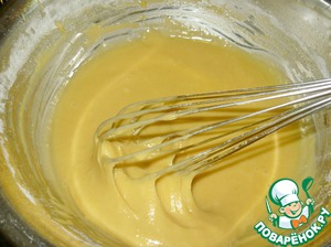 Не переставая помешивать массу венчиком, чтоб не образовалось комочков.