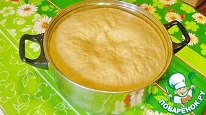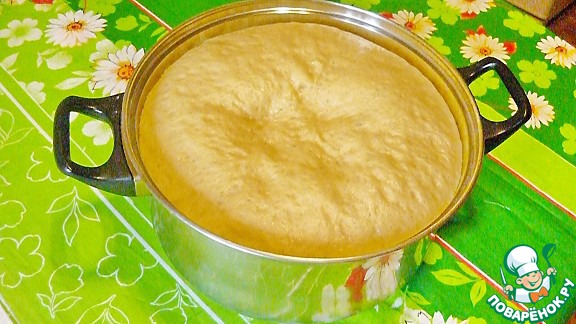 Затем поставить эту опару в теплое место минут на 30, она должна увеличится в объеме в 2 раза.