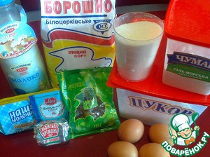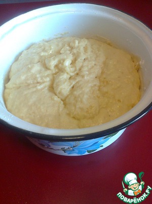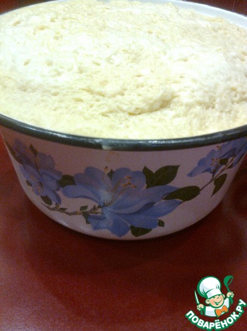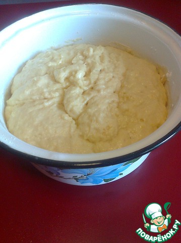 Месим тесто. В теплое молоко добавить дрожжи, 1 ст. л. сахара и 1 ст. муки - вымесить и поставить чтоб побродило в теплое место на 20 мин.