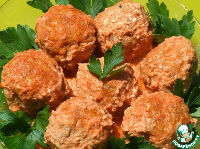 Рецепт «Тефтели с грибами в томатно-сметанном соусе»: