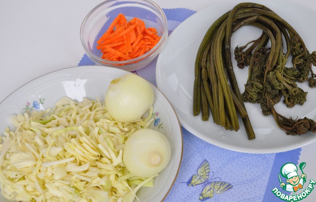 Ингредиенты для «Пирожки с папоротником и капустой по-камчатски»: