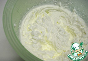 Холодные сливки взбить с сахарной пудрой до крепких пиков, но не переусердствуйте, иначе сливки могут превратиться в масло.