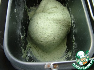 Замесите в течение 2 минут тесто из крапивного пюре, закваски, муки, дрожжей и сахара. Тесто должно получится не очень мягким но и не крутыми. Регулируйте густоту водой или мукой. Оставьте на 30 минут для набухания клейковины.