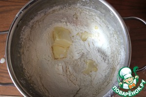 Добавить муку, яйцо, размягченное масло, соль.