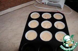 Формочки заполняем тестом на 2/3. Выпекаем кексы в разогретой до 190 ° C 25-30 минут до золотистого цвета. Проверяем зубочисткой или спичкой тесто на готовность.