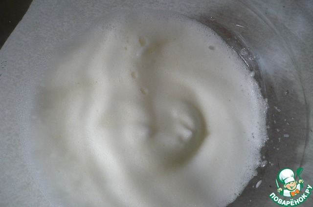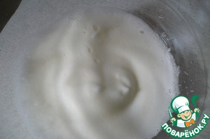 В белки добавить чуть чуть соли и взбивать до мягких пиков.