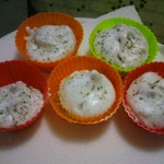 Теперь кладем их в силиконовые формы, не доходя до края 1 см. и хорошенько разровнять, чтобы не было пустот внутри.