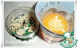 Измельчить чеснок. А из апельсинов выдавить сок (из 2 шт).