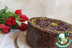 Верх я украшала шоколадом (50гр), растопленным со сливочным маслом (30гр). Все размешаем и наливаем в целлофановый мешочек, отрезаем уголок и можем рисовать. Сверху у меня рубленые фисташки. Это я не ставила в ингредиенты, тут уже ваша фантазия.