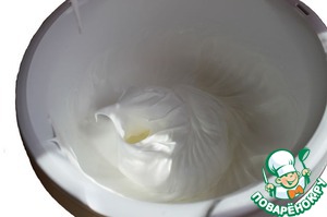 Сначала растопим шоколад 60гр на водяной бане и дадим ему остыть. В это время взбиваем белки (6 шт. примерно) до пиков. Когда они будут хорошо уже взбиты, добавляем постепенно 88гр сахарa.