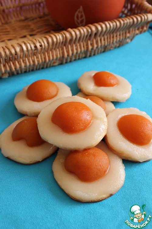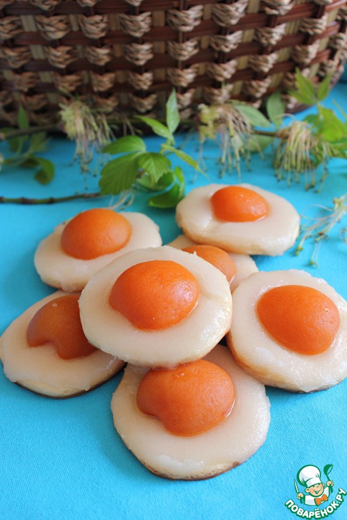Смазать каждое печенье глазурью, выложить в центр абрикос, слегка вдавить. Дать глазури застыть.