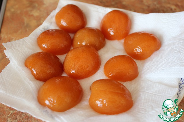 Абрикосы выложить на бумажные салфетки, дать впитаться лишней жидкости.