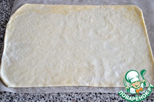 ~3.5 стакана муки, замесить нежное тесто. Hакрыть пленкой и поставить на ночь, но если спешите, то и 4 часов хватит в холодильник. Вынуть за 30 минут приготовления, дать согреться, и можно раскатывать. -
