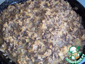 Грибы жарила на растительном масле 20 мин., после добавила лук и жарила еще 10 мин., на медленном огне, периодически помешивая.