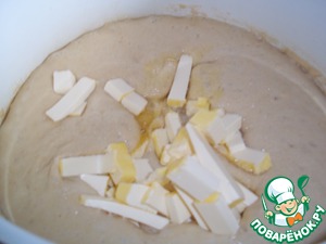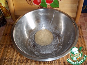 Когда опара поднялась два раза, стала месить тесто. В опару добавила 0.5 ч. л. соли,4 желтка,50 гр. сливочного масла,3 ст. (+ -) пшеничной муки. Тесто должно быть эластичным.
