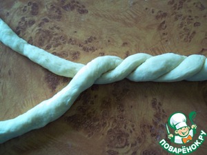 Из двух частей теста раскатала жгуты и переплела их между собой.